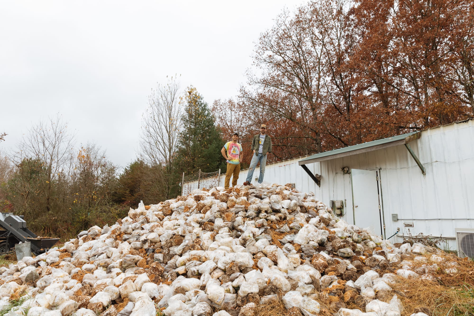 They walked us outside to this backyard mound of used substrate bags. Their plan is to recycle and compost old substrate – hello, Swirling Death Blender 2.0 – for a recycled growing medium.