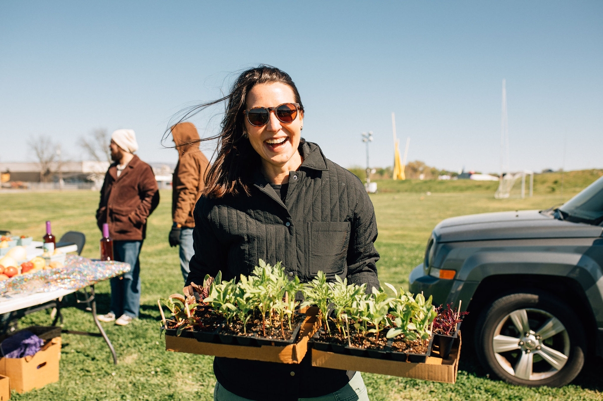 AJ looked at all the beauty around her: sweet potatoes, early strawberries, duck eggs, Nicaraguan coffee, plant starts.