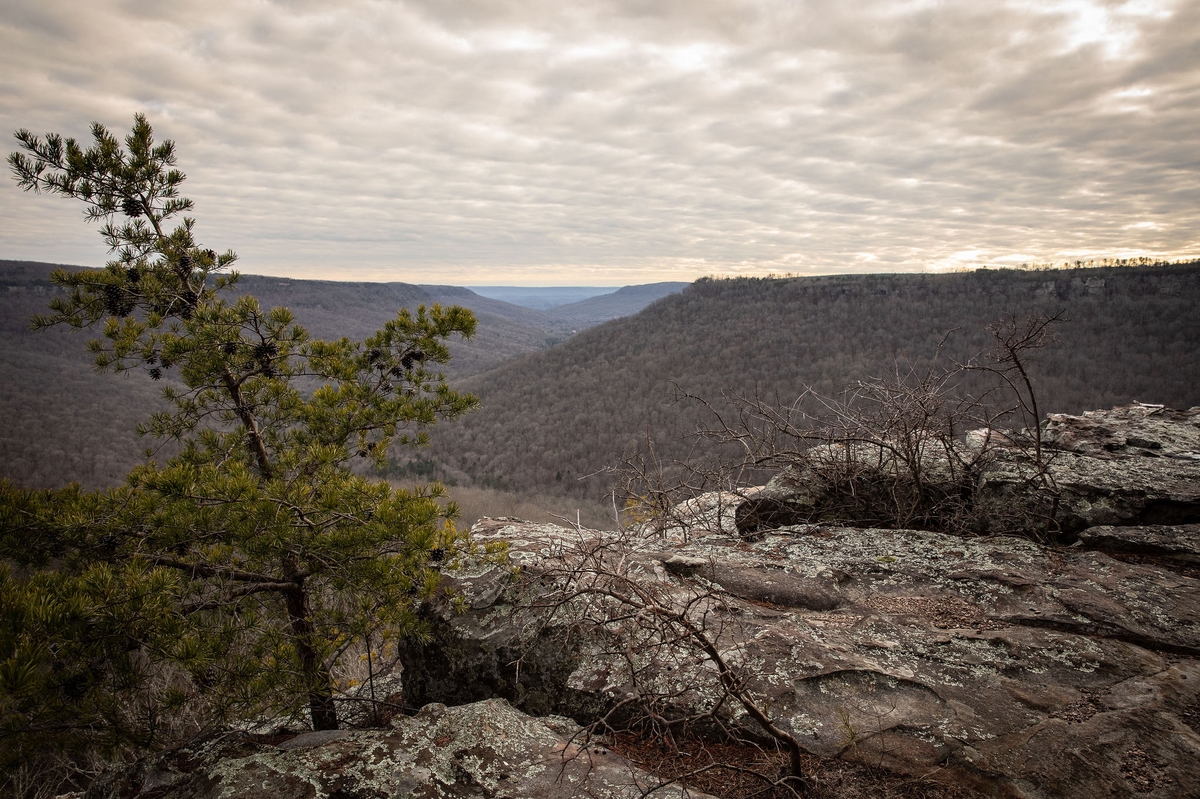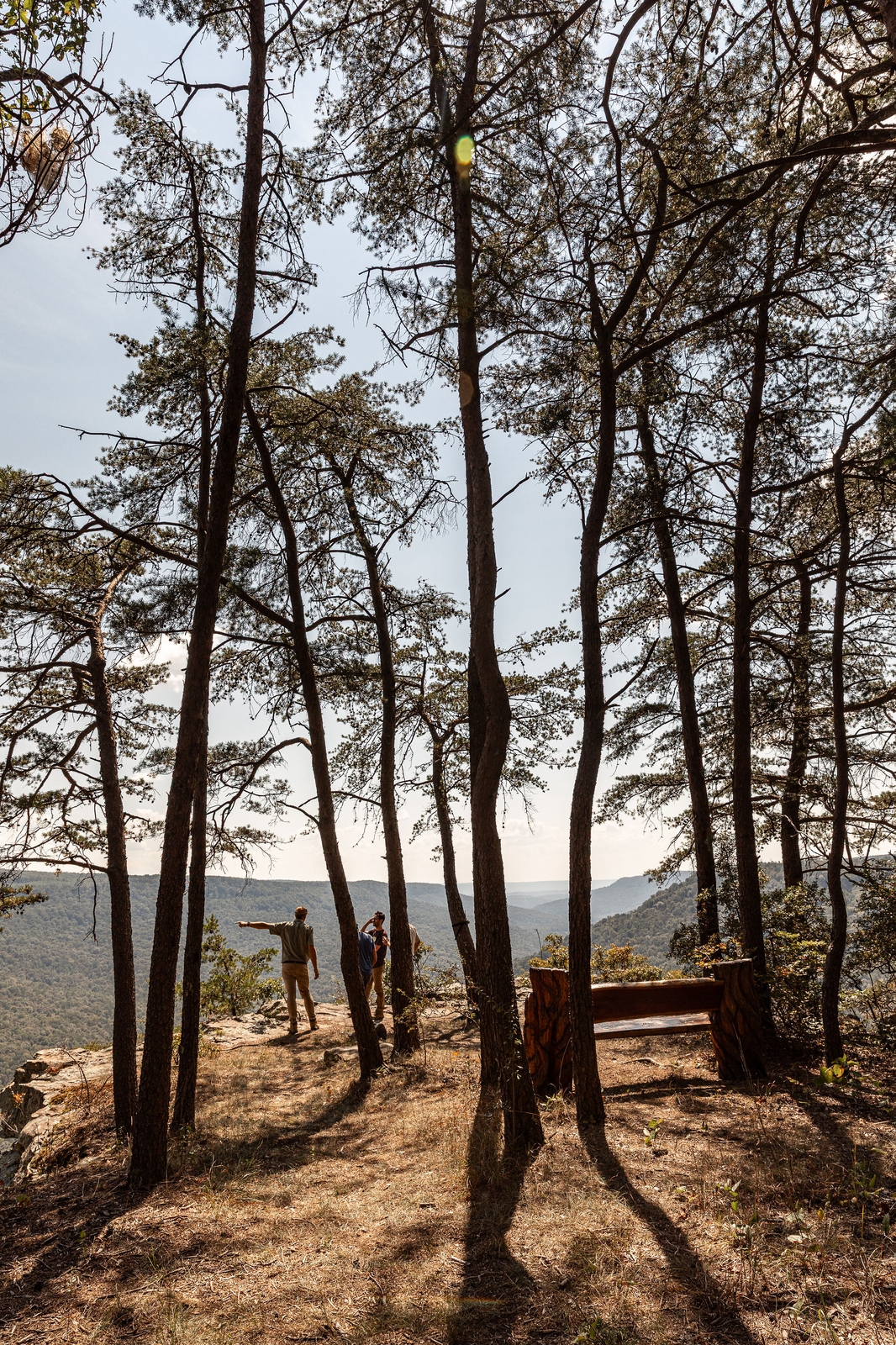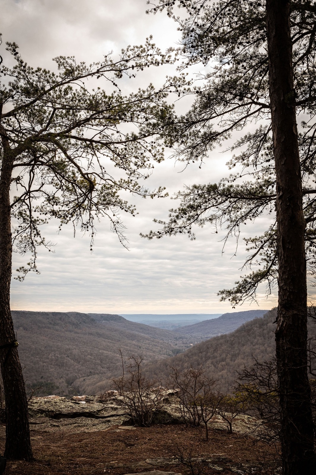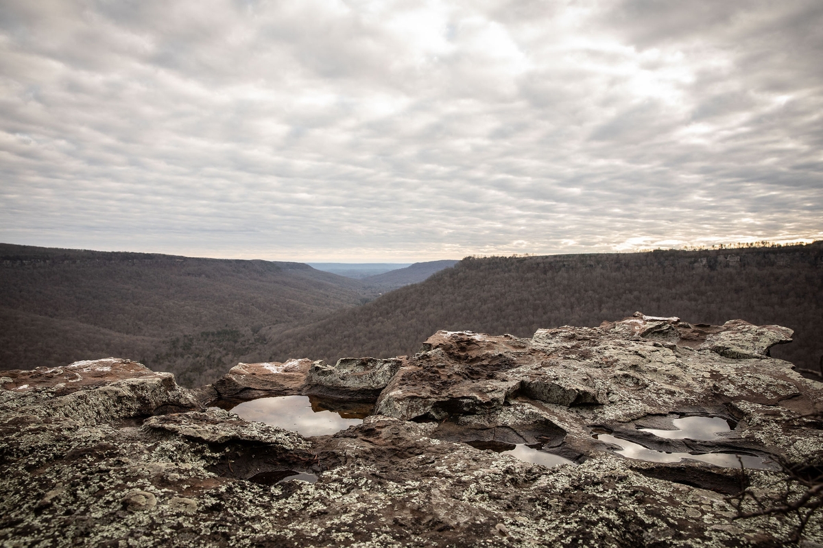 The dirt trail turns into more rock underfoot, you see the first peeks of a bluff.