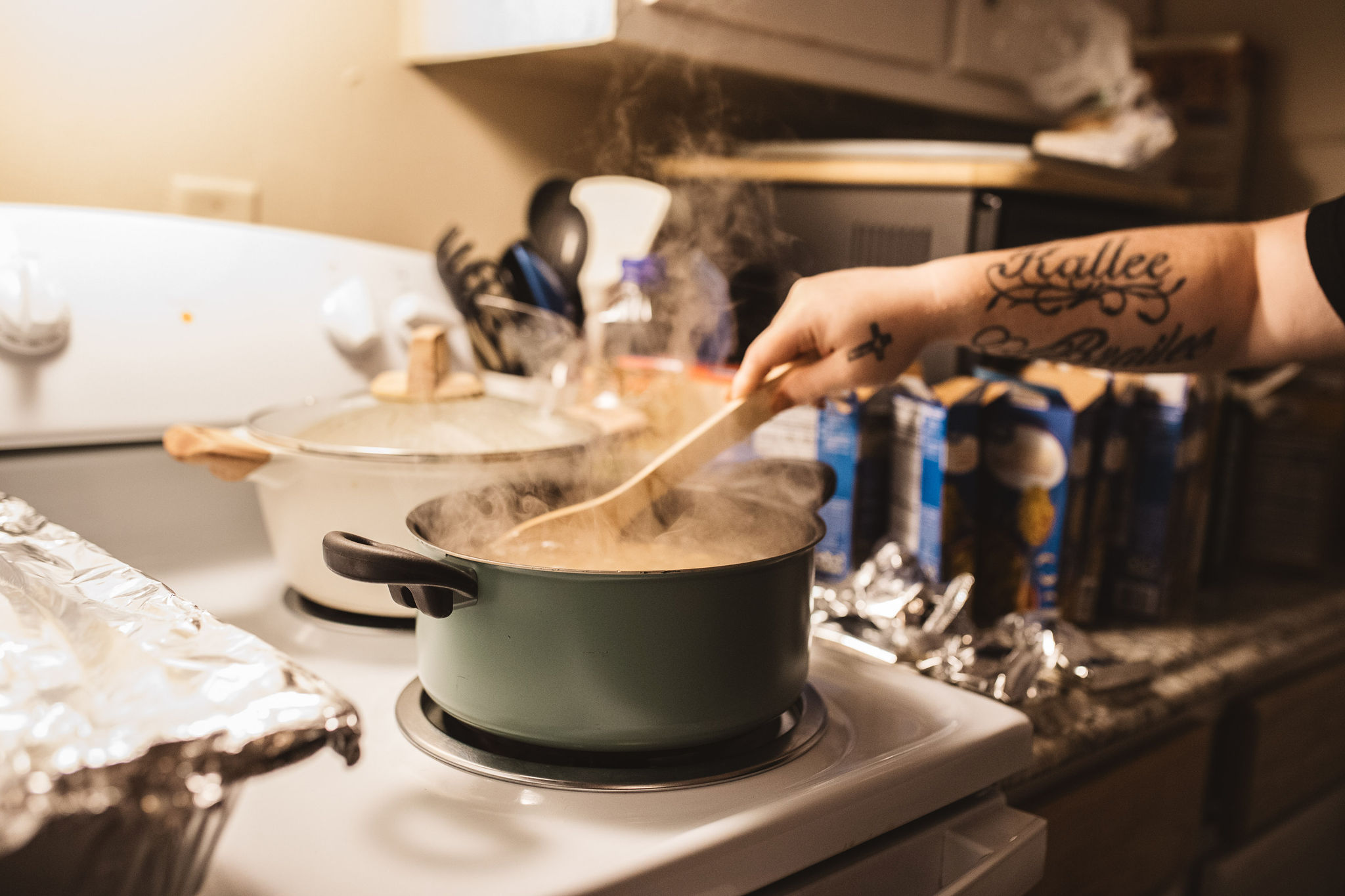 In a duplex apartment kitchen near Ely Road in Hixson, it's almost dinner-time.