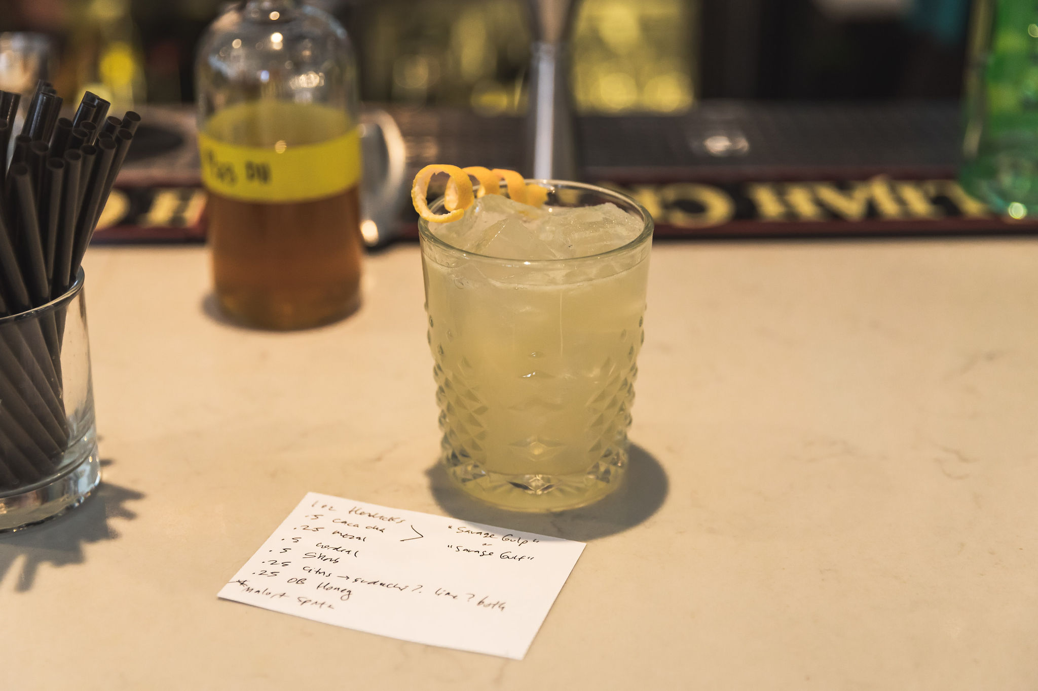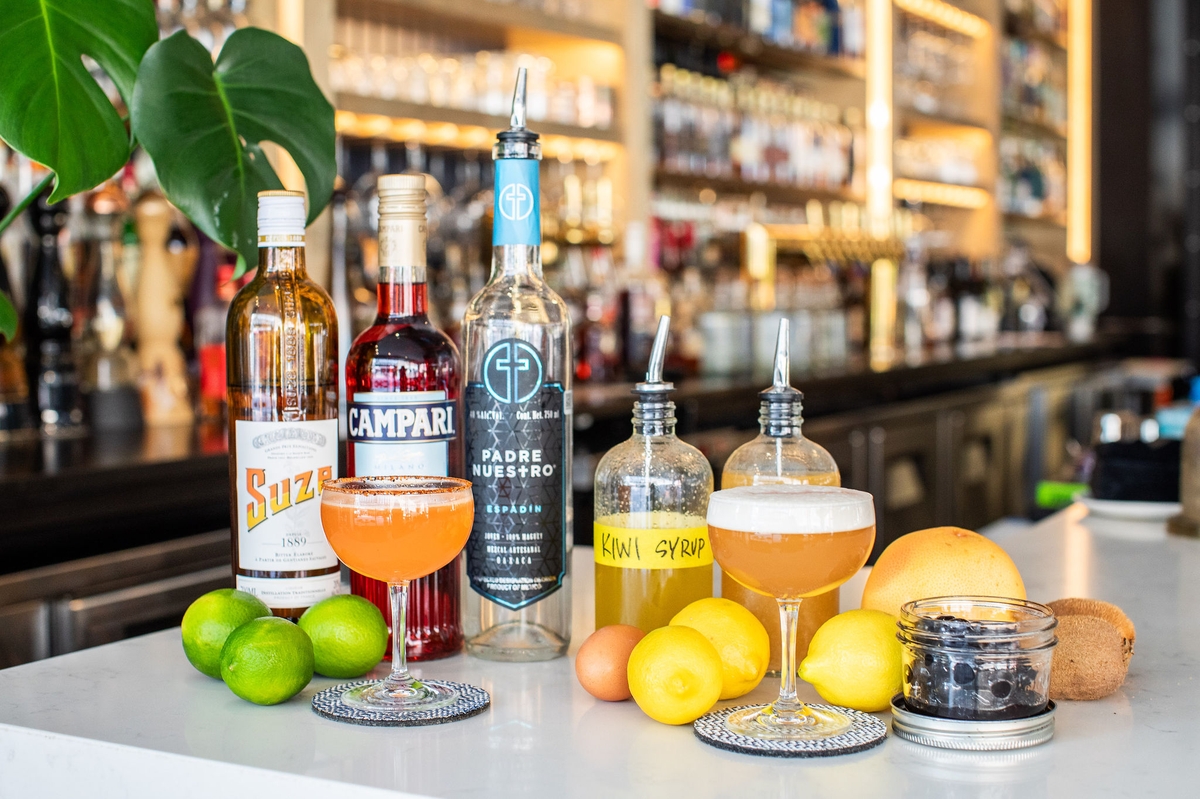 Next to it? Tropical Sour, a zero-proof cocktail that's part of the N/A cocktail vision Manu's been working on for some five or six years.