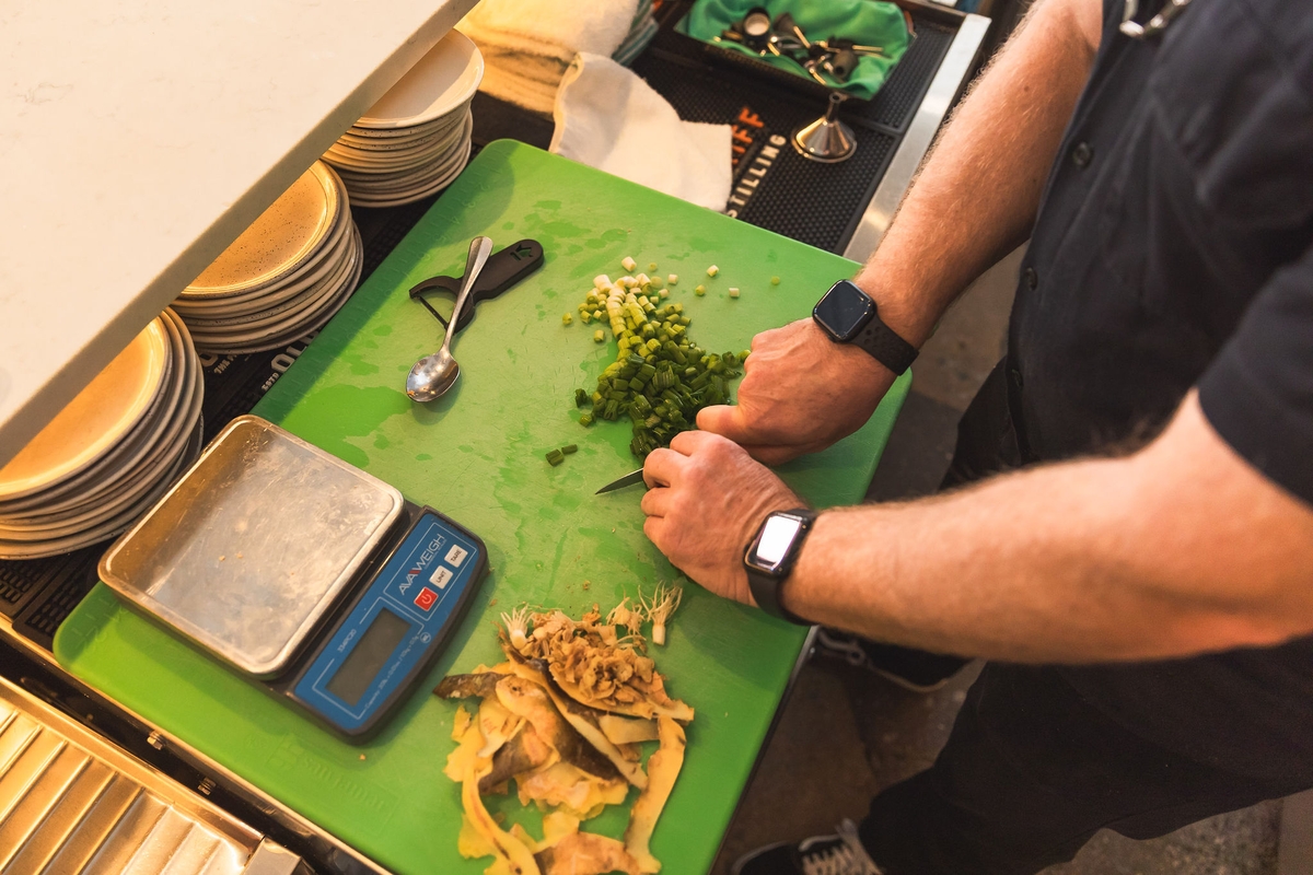 As we talked, Manu sliced up late winter rutabaga. He wanted to add a honey base. In California, farmers' markets were abundant. He still seeks out seasonal produce for the cocktail menu. (You can take the bartender out of California, but you can't take ...)