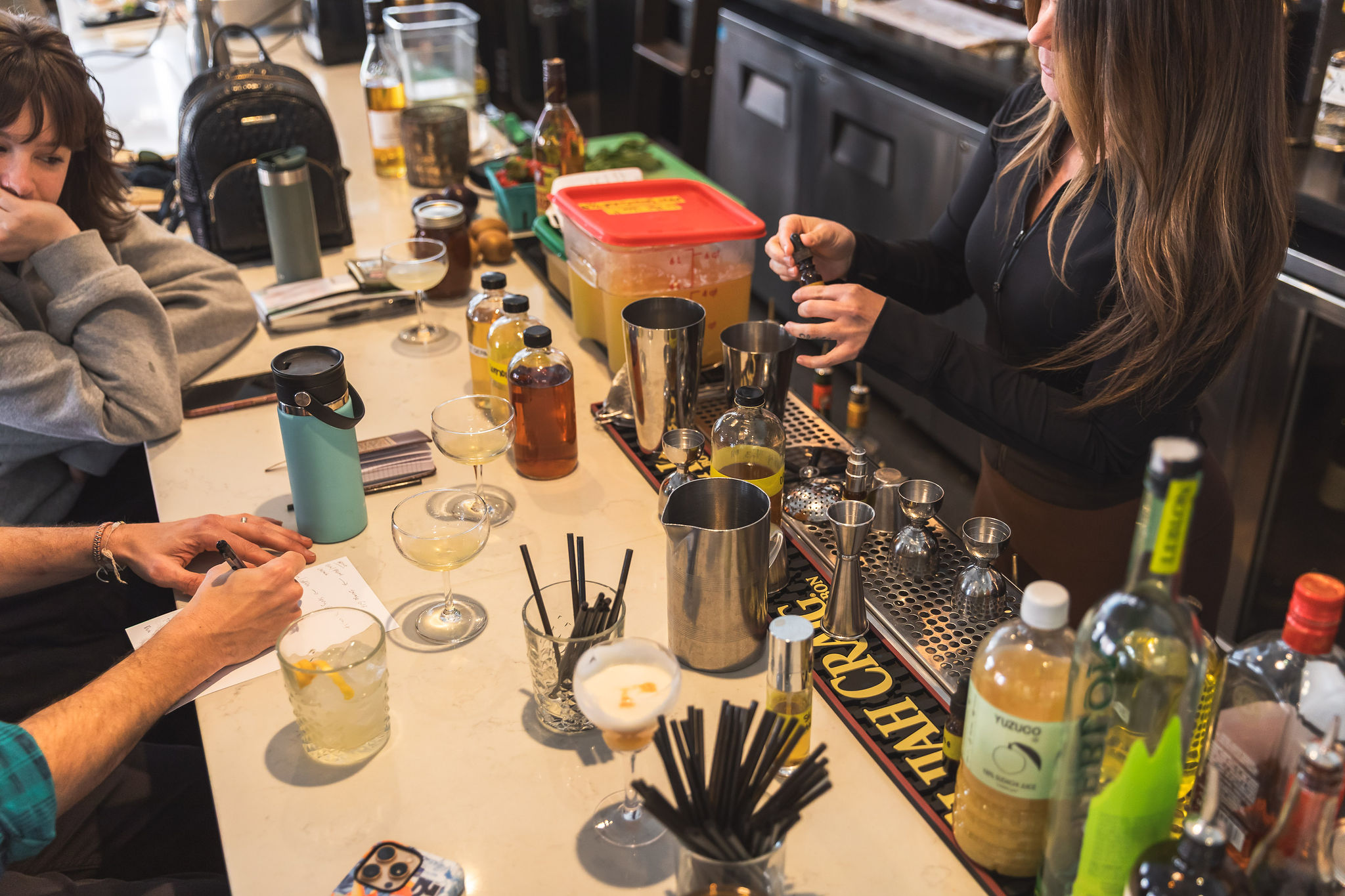 Months before the Ring of Fire and Tropical Storm debut, Manu and Easy's bar team — Dakota Hack, Rylan Thompson, Ally Spalding, Joe Dominick — spent hours and days behind the bar, going back-and-forth on ideas, sharing recipes written on napkins, iNotes, sipping each others' creation, before taking the whittled-down list to Chef Niel.