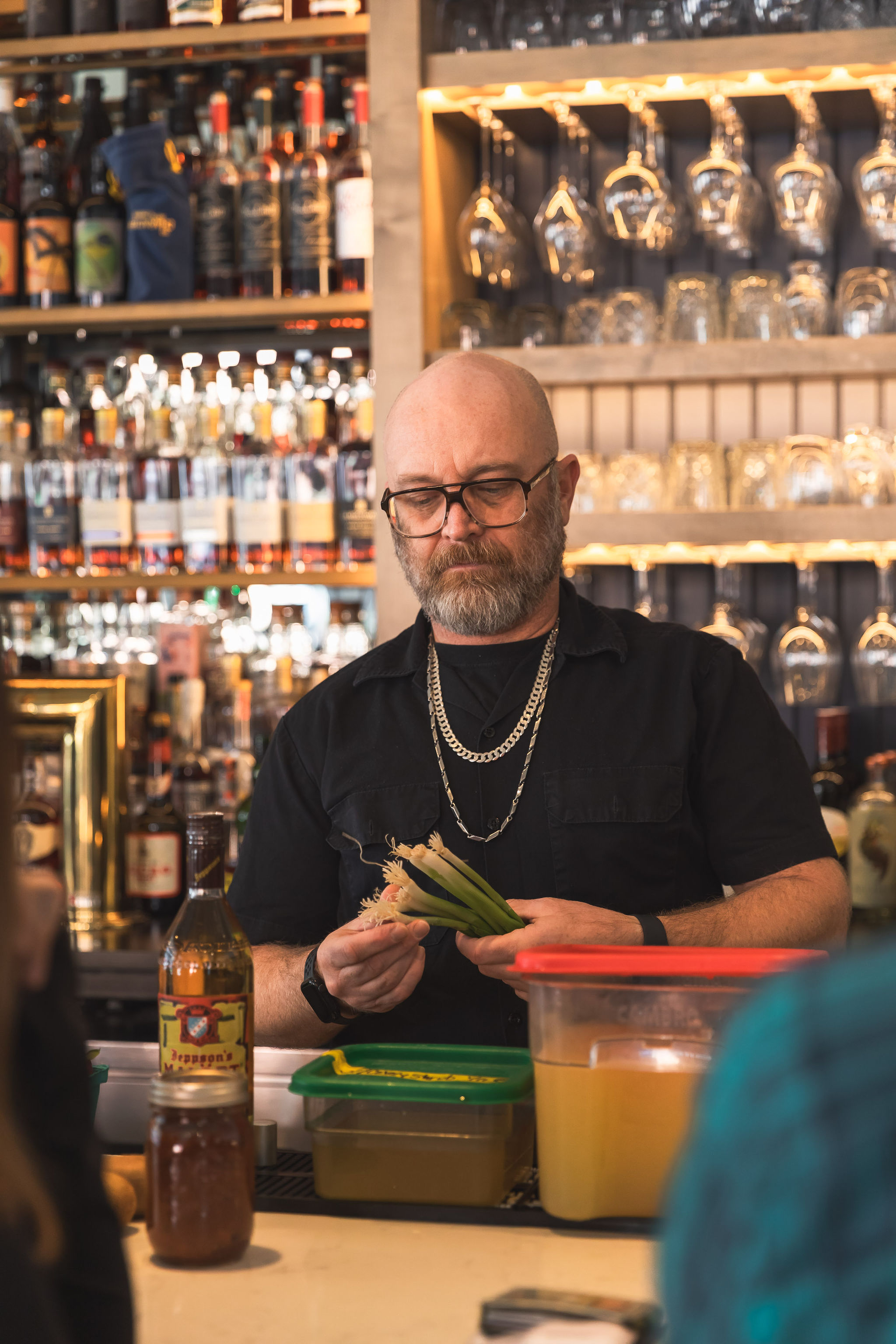 Behind-the-scenes on Easy's spring cocktails with the man in black and bling.