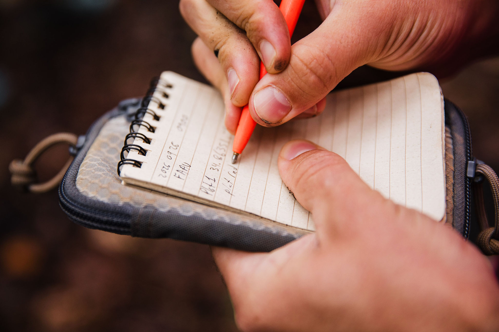 It is calming, only the sound of the furled-then-unfurled measuring tape, raindrops on leaves, a dog being a dog in the woods.