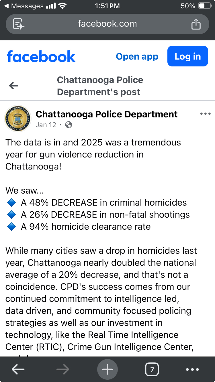 The Chattanooga Police Department posted some powerful news recently: gun violence trends have dropped significantly, according to city officials.