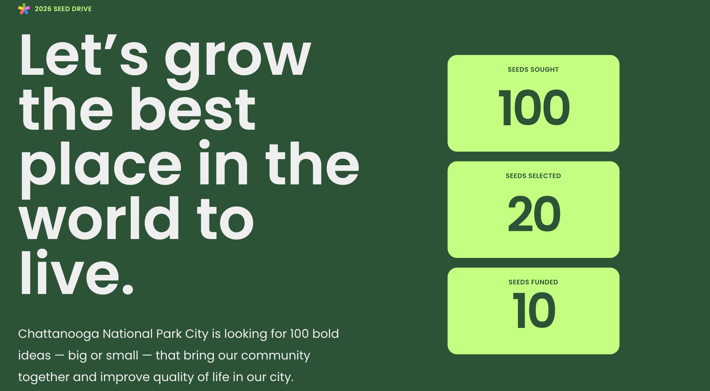 Friends of Outdoor Chattanooga tapped David Littlejohn, founder of Humanaut, to lead a "Seed Drive," where NPC-esque ideas are pitched and potentially funded.
